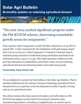 The edition features India's latest state-level tenders and tariff orders on PM-KUSUM as well as updates on the Central Government’s domestic solar manufacturing initiative, and an insightful piece on reactive power compensation in renewable energy integration by Dr. Rachakonda Akshay.